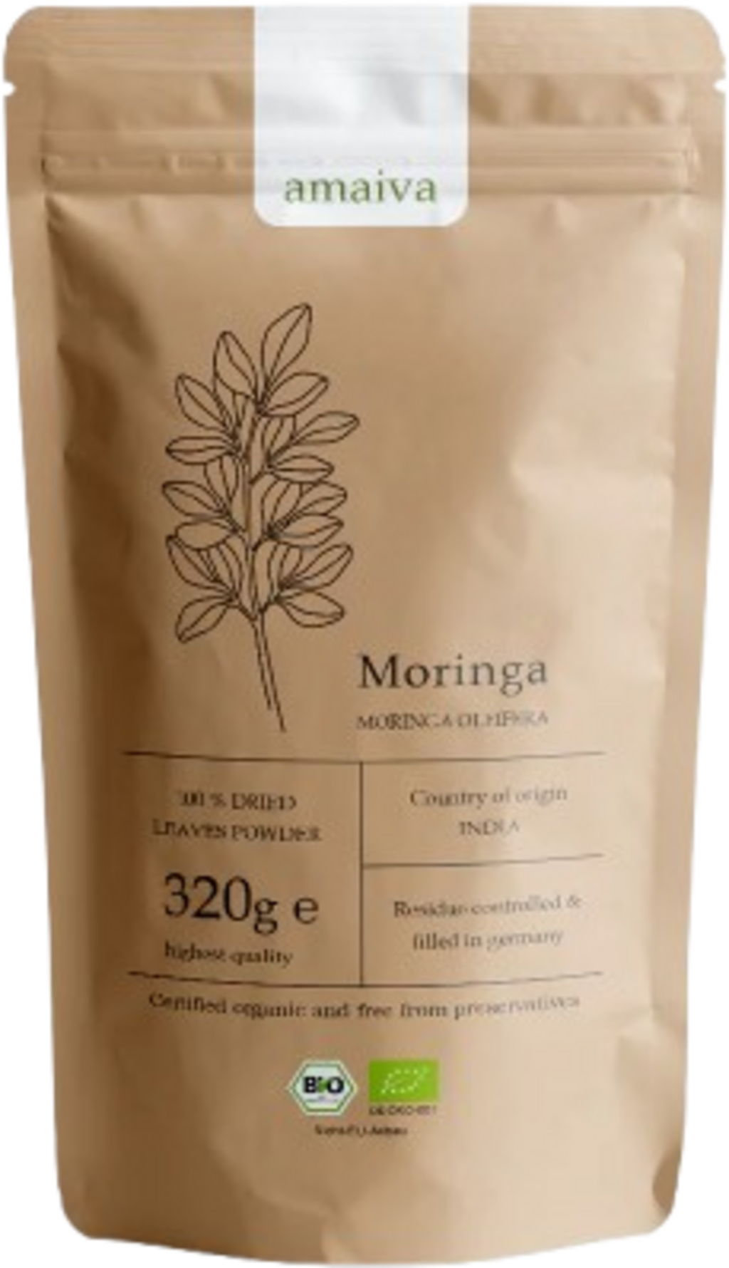 Nota: utilizza la polvere di Moringa Bio Amaiva per cospargere e guarnire insalate, primi piatti, risotti e molto altro. Aggiungila ai prodotti da forno, mescolala a zuppe, salse o condimenti; la polvere fine è ideale anche per essere mescolata e shakerata.