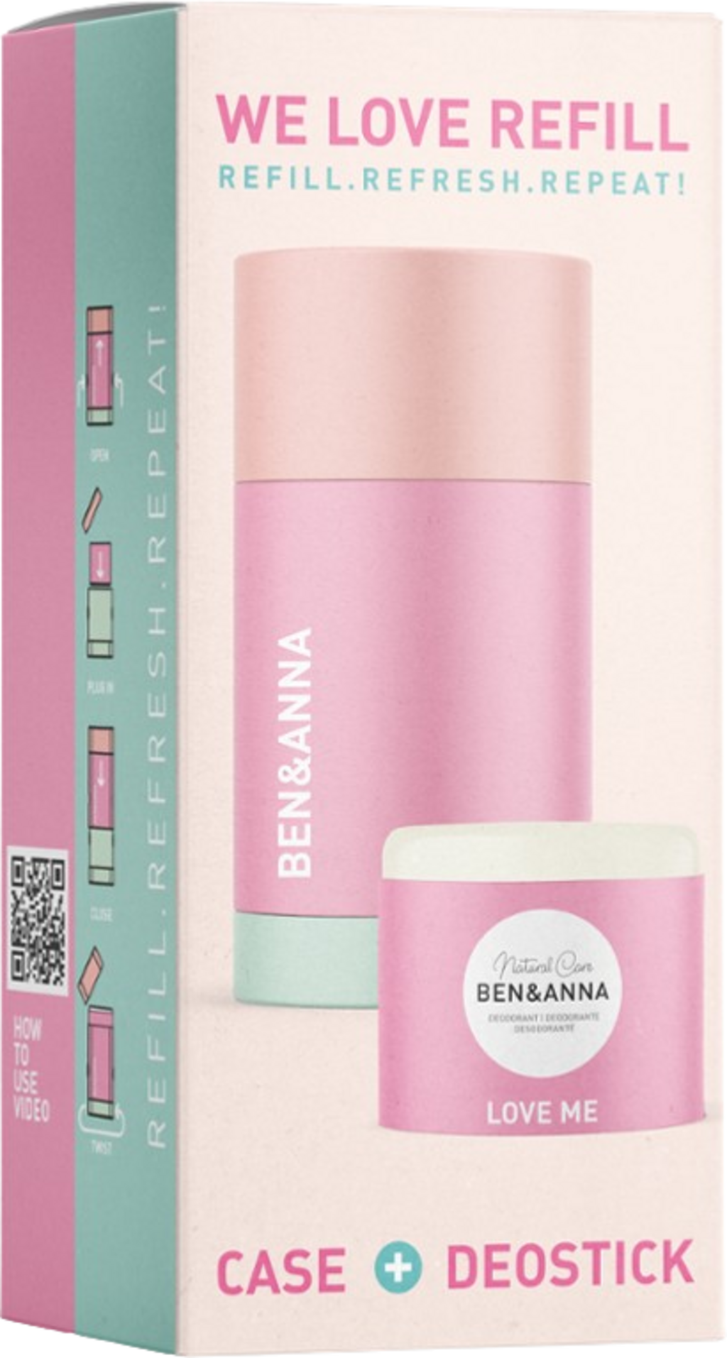 BEN & ANNA We Love Deodorante Stick Ricaricabile "Love Me", Set iniziale (40 g)