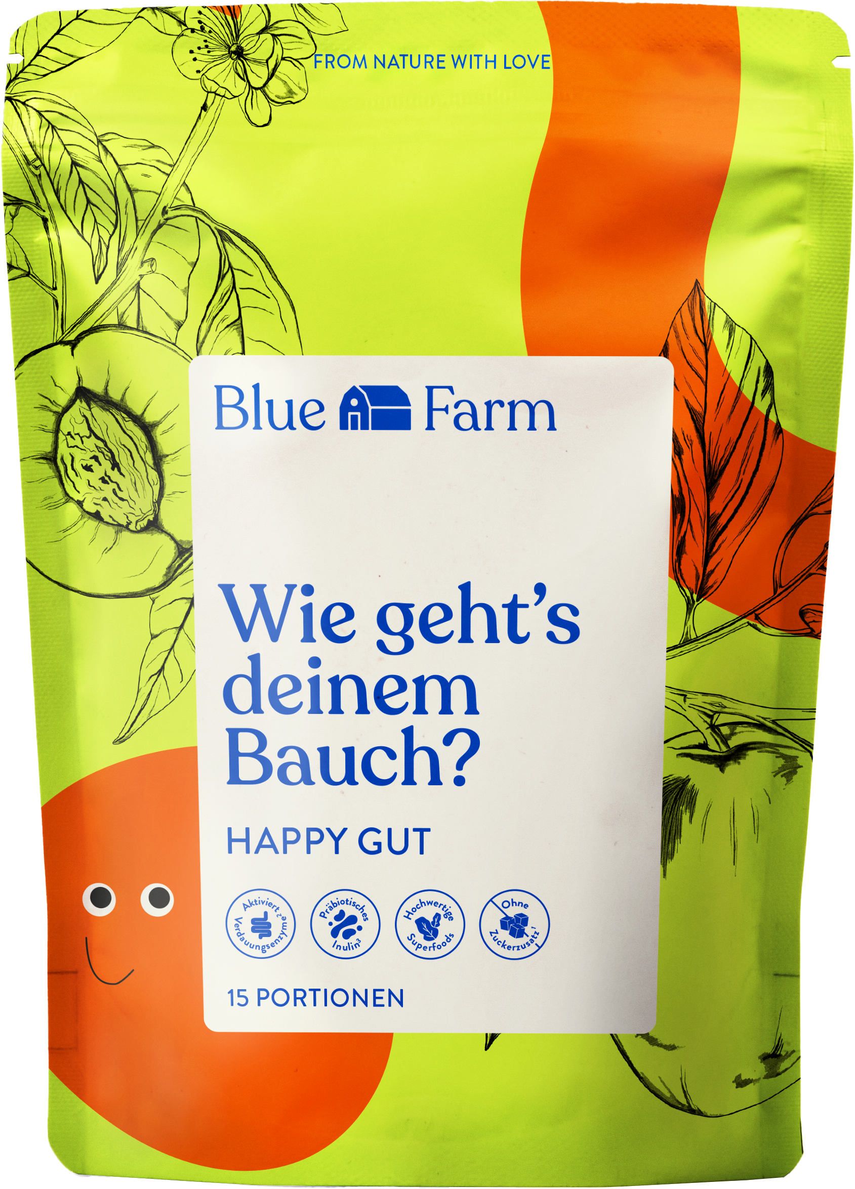 Happy Gut di Blue Farm combina una miscela accuratamente bilanciata di avena fermentata, inulina da cicoria, polveri di frutta e piante e calcio vegetale da alghe rosse, proposta in un pratico formato in polvere. La composizione fruttata con mango, ananas e pesca offre un gusto piacevole, così puoi integrare in modo semplice la tua routine quotidiana con un solo drink che riunisce diversi ingredienti.