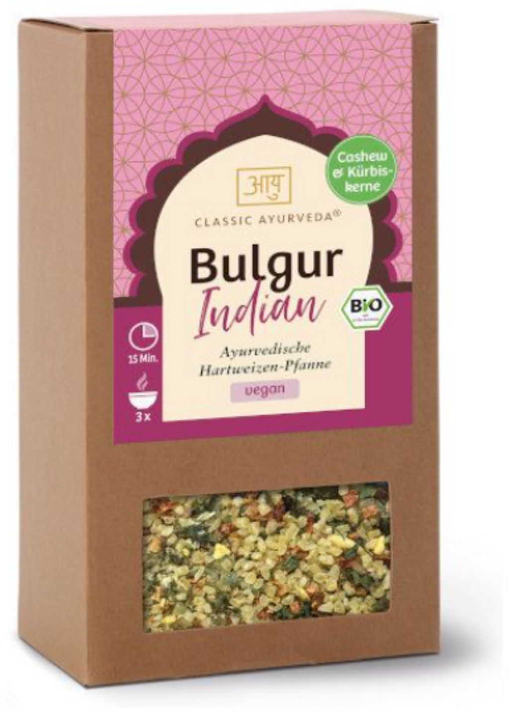 Preparazione: versare 80 g della miscela di bulgur in una pentola e coprire con 200 ml di acqua bollente. Portare brevemente a ebollizione e cuocere a fuoco basso con coperchio per circa 15 minuti, mescolando di tanto in tanto. Togliere dal fuoco e lasciare riposare per altri 5 minuti. Condire a piacere con olio, ghee o sale.