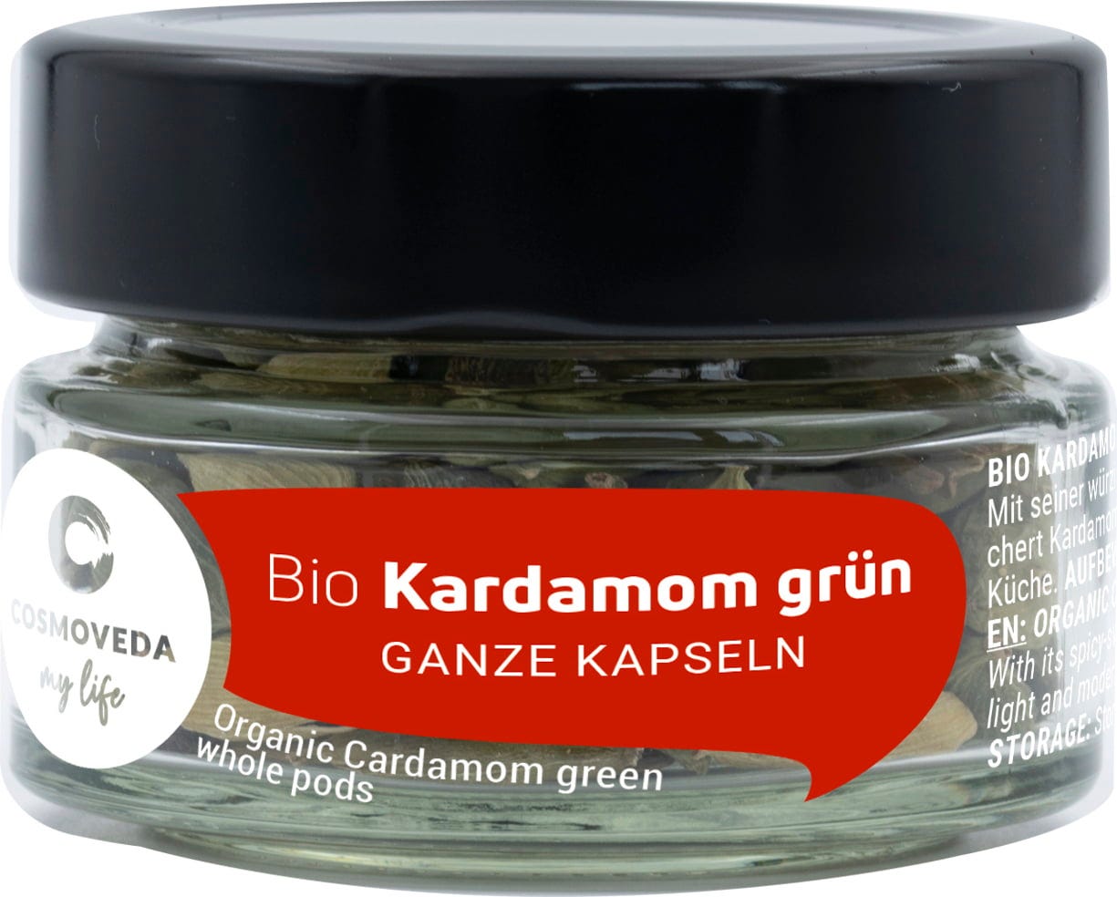 Il cardamomo verde, con il suo piccolo e aromatico seme, è ideale per aromatizzare drink e bevande a base di latte o soia oppure per piatti a base di riso e curry. La spezia viene tradizionalmente dal sud dell'India, oggi anche dallo Sri Lanka, Guatemala, Tanzania e Brasile.