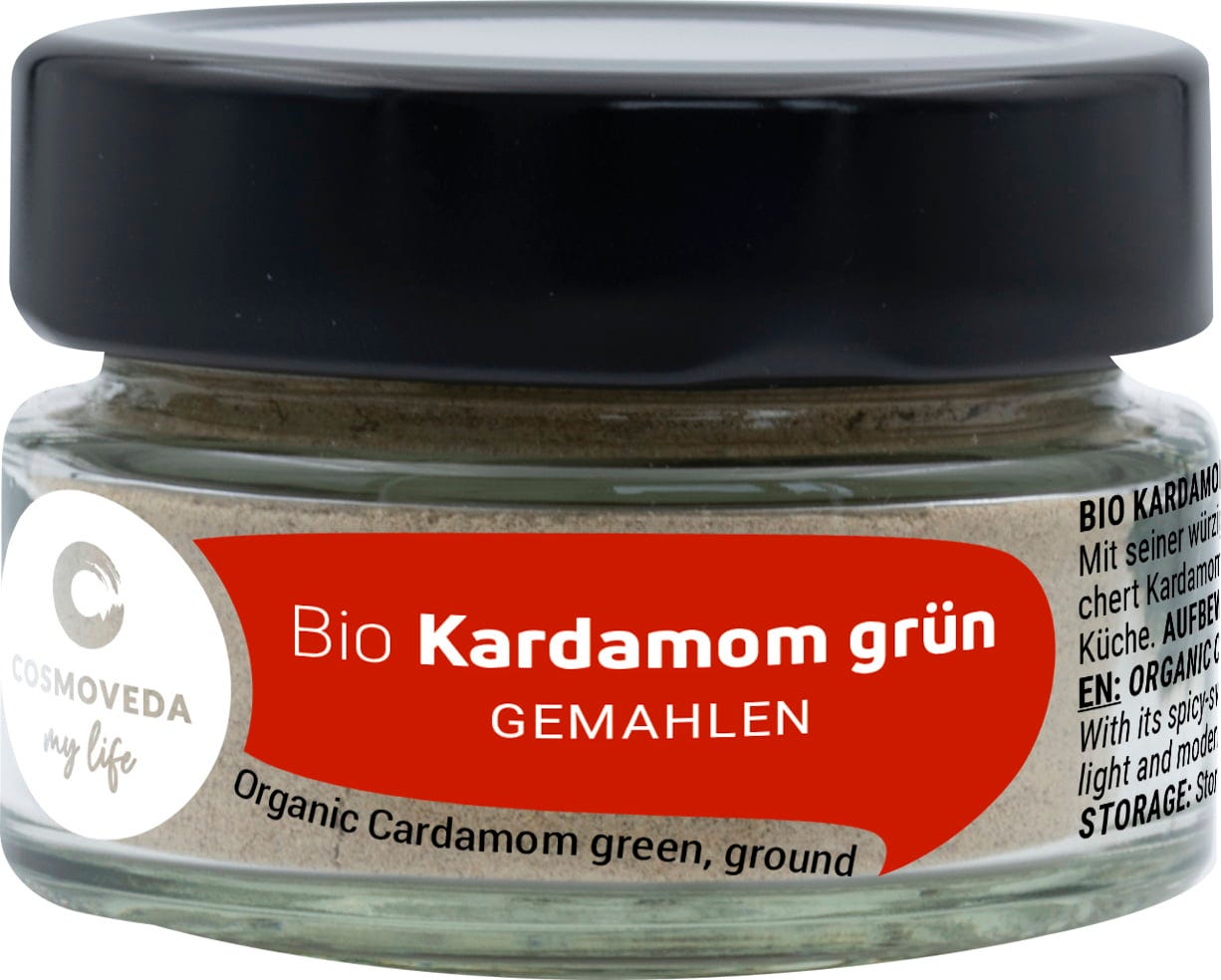 Il cardamomo verde è una spezia molto digeribile che viene usata spesso per condire bevande dolci a base di latte o caffè o per deliziosi dolci. Il suo sapore aromatico lo rende perfetto anche per piatti a base di riso o curry ed è una delle spezie più preziose al mondo, insieme allo zafferano ed alla vaniglia. Oggi viene coltivata in Sri Lanka, Guatemala, Tanzania e Brasile ma originariamente proviene dall'India.