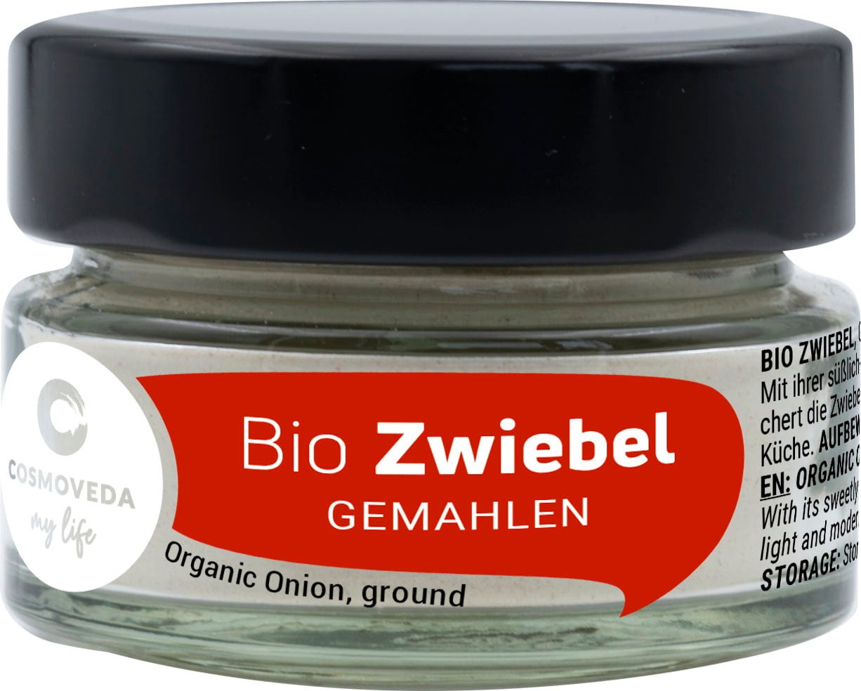 Polvere di cipolla macinata, molto profumata ed un alternativa prativa quando non si hanno a disposizione le cipolle fresche. Perfetta per aggiungere sapore a minestre, stufati, piatti a base di verdure ed in combinazione anche con altre spezie esotiche, come curcuma, coriandolo, cumino e pepe.