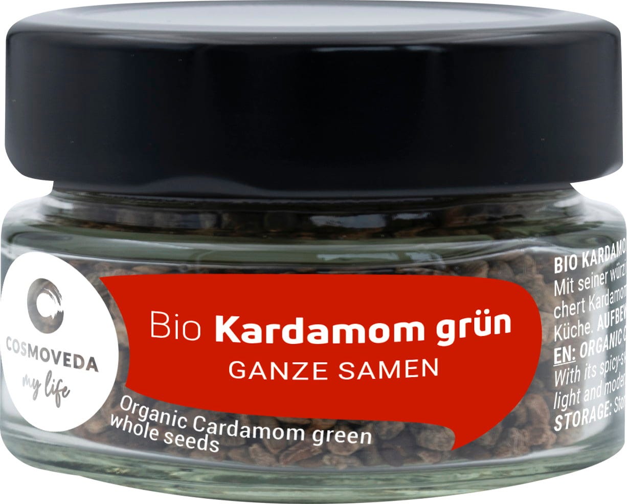I semi del cardamomo verde vengono spesso macinati ed usati per dare sapore a bevande a base di latte, caffè oppure per deliziosi dolci. Il cardamomo è una spezia molto digeribile ed è una delle spezie più antiche e preziose al mondo, subito dopo allo zafferano ed alla vaniglia. La spezia proviene dal sud dell'India ed oggi cresce in Sri Lanka, Guatemala, Tanzania e Brasile.
