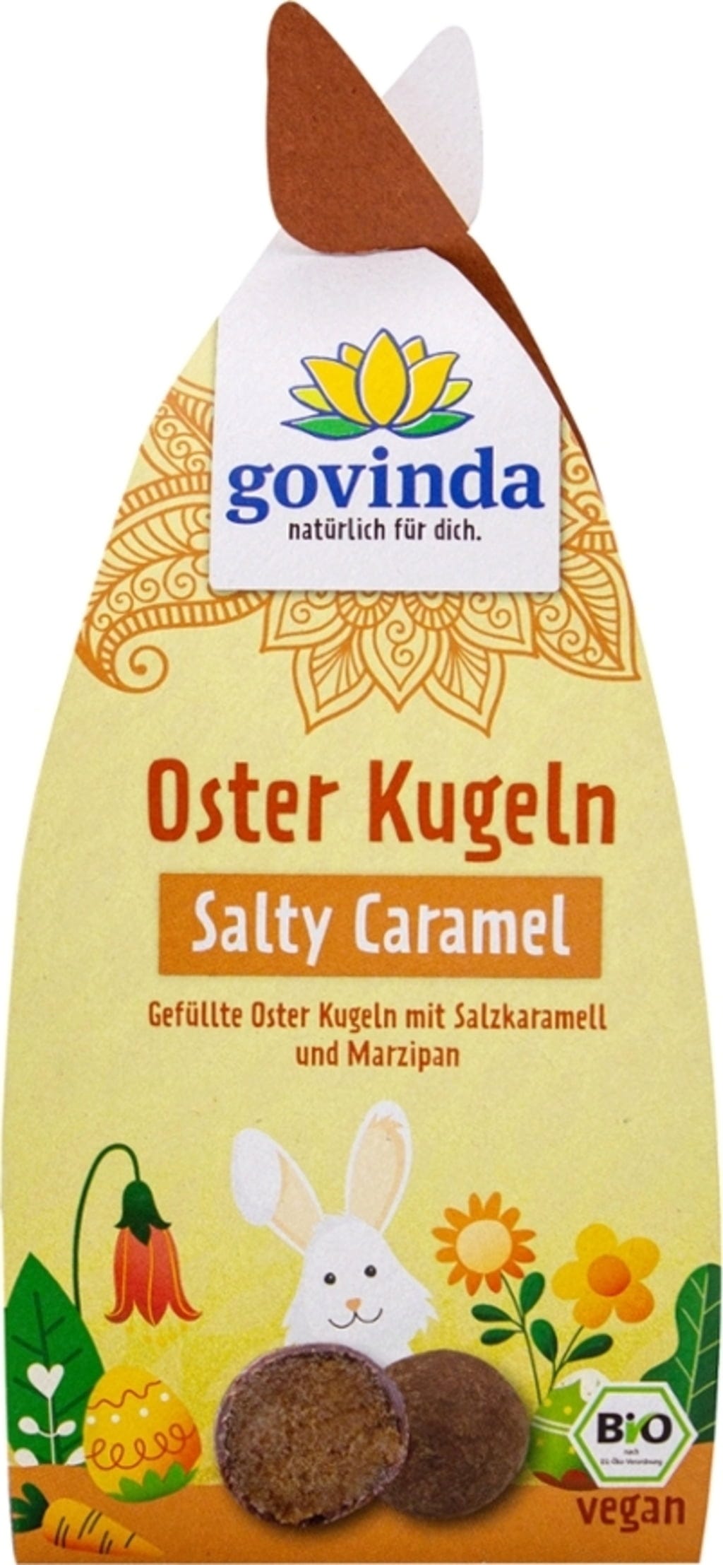 Le Sfere Pasquali Salty Caramel di Govinda offrono un'armoniosa combinazione di dolce pasta di datteri e una delicata nota di sale marino. Il cuore cremoso al caramello di datteri è avvolto da uno strato croccante di copertura al cioccolato. Queste sfere bio vegane sono realizzate con cura nella manifattura interna e rappresentano un'alternativa di qualità per chi apprezza l'incontro tra dolce e salato. Ideali come raffinata aggiunta al cestino pasquale.