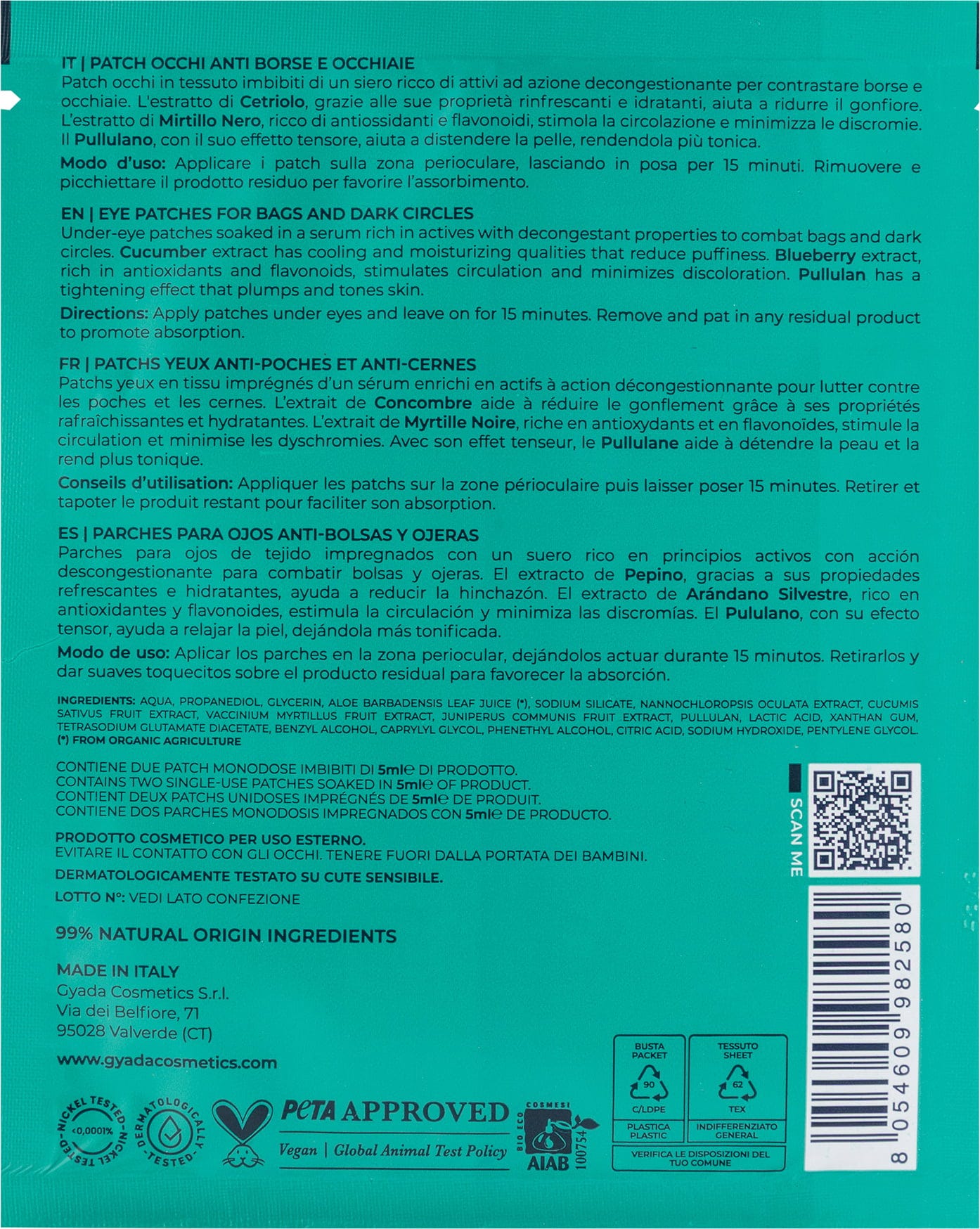 GYADA Cosmetics Patch Occhi Contro Borse e Occhiaie nr.4, 5 ml