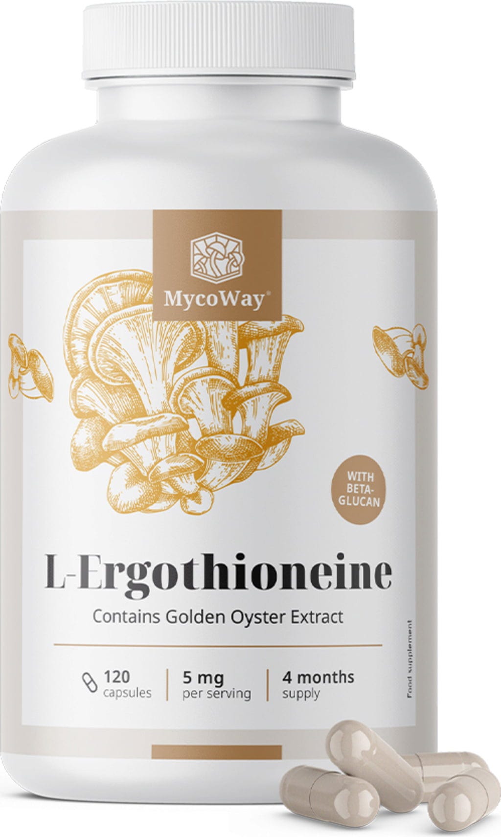 Questo prodotto combina il raro amminoacido L-ergotioneina con un estratto di alta qualità di fungo ostrica giallo (Pleurotus citrinopileatus). La L-ergotioneina è un composto naturale particolare, assorbito dall’organismo tramite specifiche proteine di trasporto. Poiché il corpo non è in grado di produrlo autonomamente, l’assunzione avviene attraverso l’alimentazione o un’integrazione mirata.