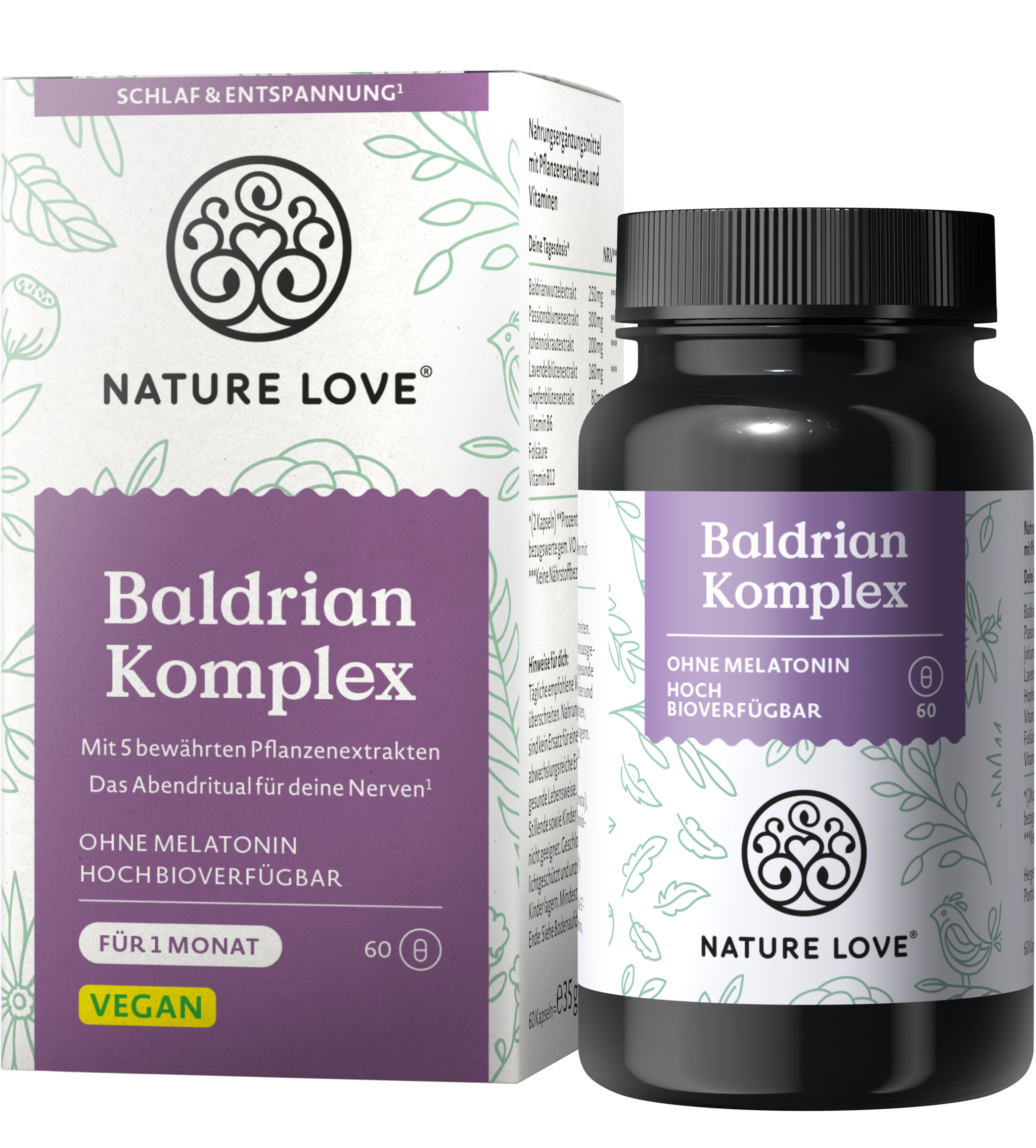 Il complesso di valeriana di Nature Love è il supporto ideale prima di andare a dormire. Le capsule sono prive di melatonina e sono quindi adatte a tutti coloro che non desiderano interferire con il proprio equilibrio ormonale naturale. Le capsule sono invece arricchite con valeriana, passiflora, iperico, lavanda, luppolo e vitamine del gruppo B.