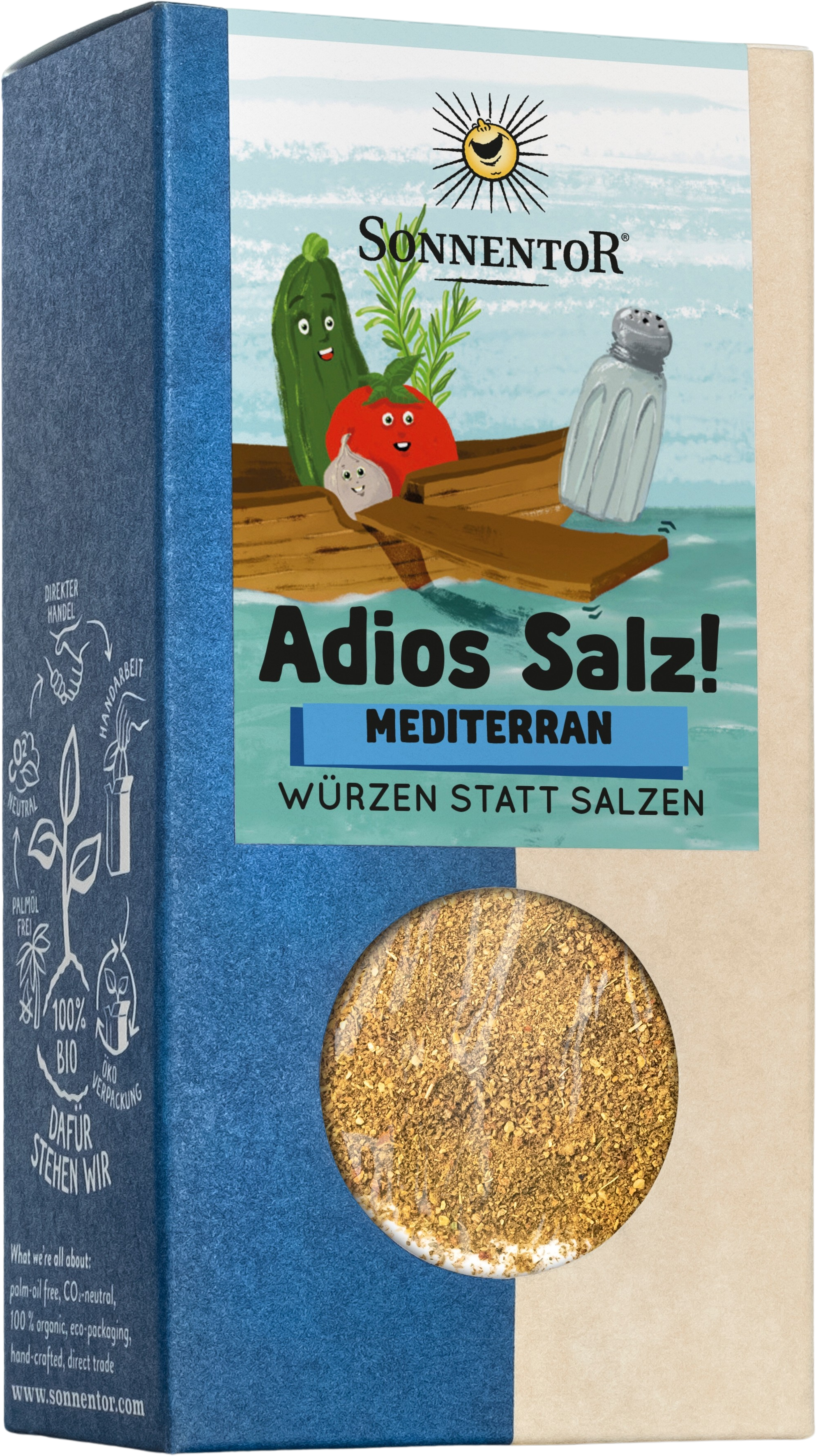 Il nostro corpo ha bisogno di sale per sopravvivere ma non in grande quantità come spesso usiamo. Per coloro che vogliono ridurre il consumo di sale consapevolmente Sonnentor ha creato le miscele Adios Sale che donano sapore senza l'uso del sale!