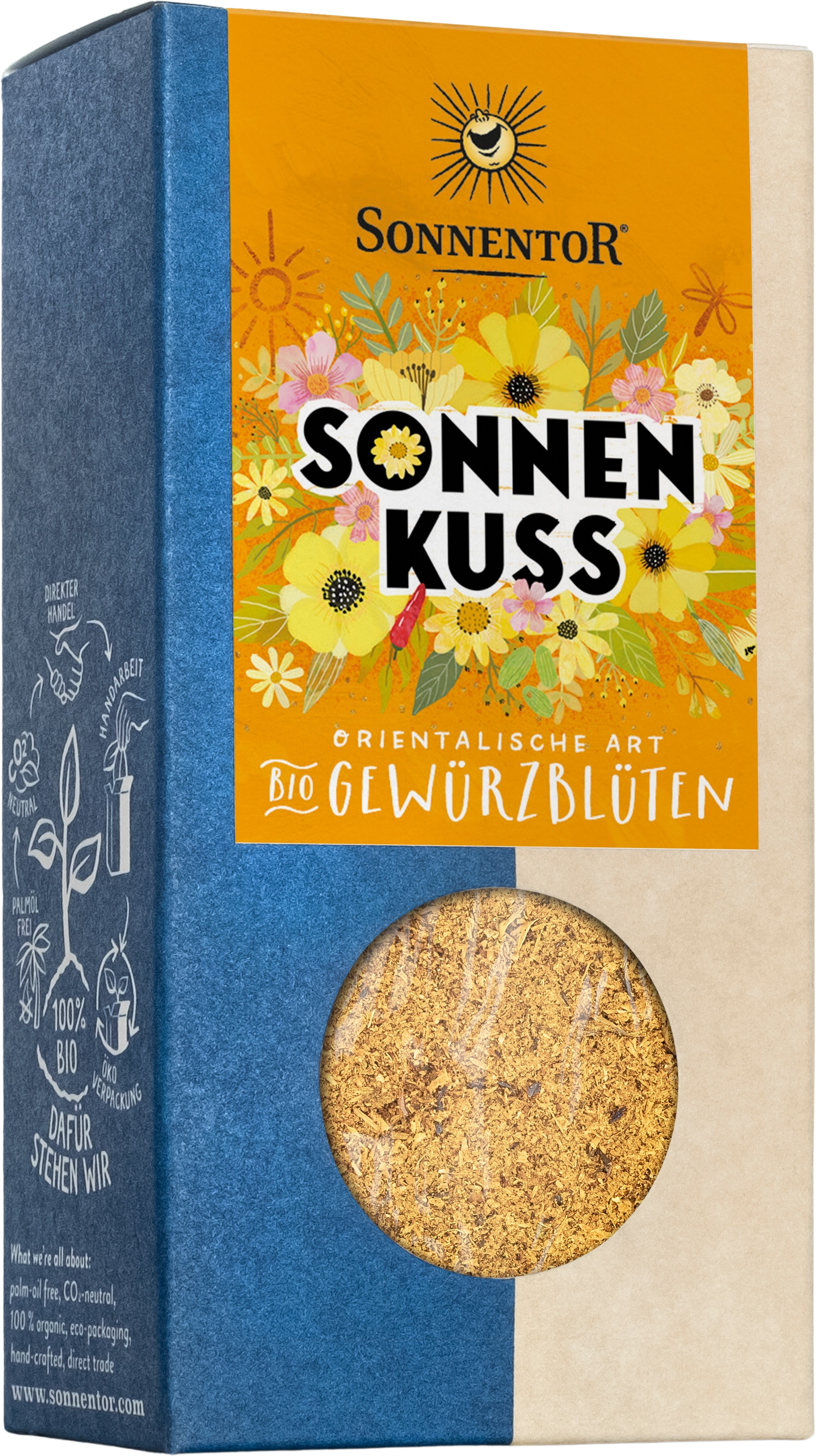 Per chi si sente a casa nella cucina orientale, questa spezia farà battere più forte il vostro cuore. Il colore giallo solare del mix bacio del sole lascia intendere che si tratta di un curry. Il bacio del sole regala un tocco in più a zuppe, carne e verdure. Ideale anche per aromatizzare verdure fritte con anacardi.