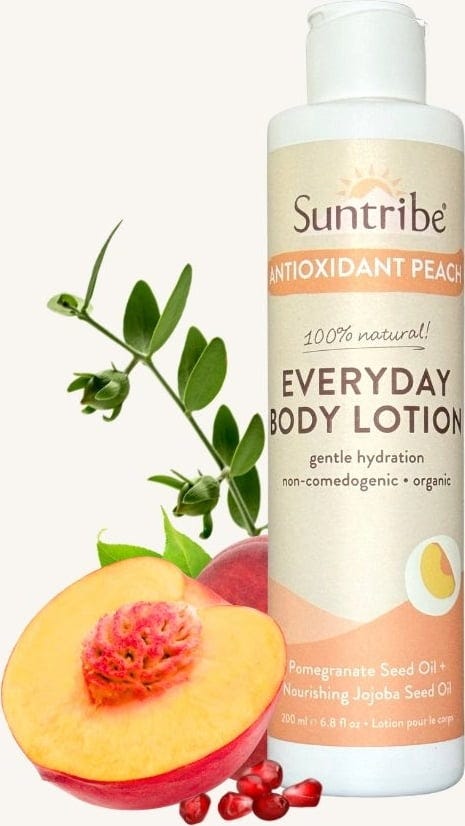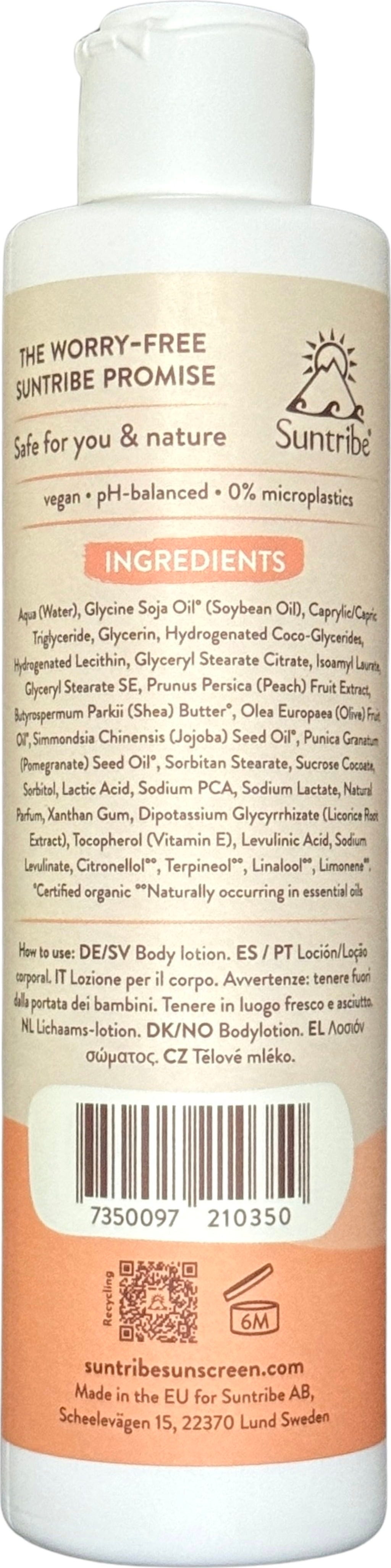 Suntribe Naturkosmetik Lozione corpo antiossidante alla pesca per tutti i giorni, 200 ml